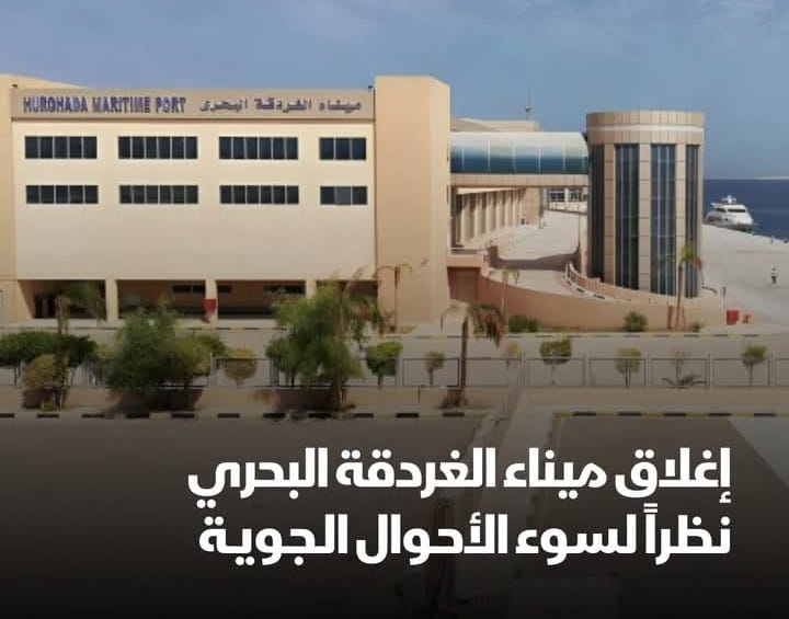 هيئة موانئ البحر الأحمر تعلن إغلاق ميناء الغردقة البحري نظراً لسوء الأحوال الجوية، حيث تتراوح شدة الرياح ما بين 24-30 عقدة شمالية غربية، وارتفاع الأمواج ما بين 3-4 أمتار، وحالة البحر مضطربة .