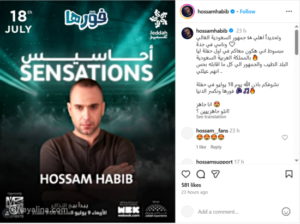 وقد عبّر حبيب عن سعادته بهذه المشاركة عبر حسابه الرسمي على “إنستغرام”، حيث نشر المُلصق الدعائي للحفل، مرفقًا برسالة مؤثرة قال فيها: