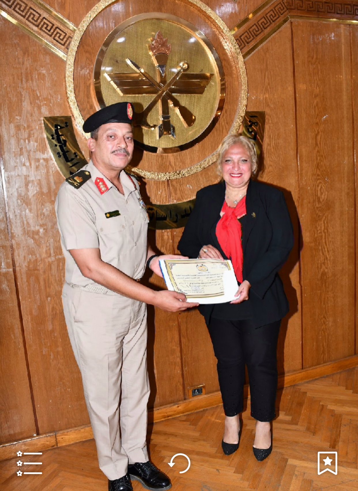 كرمت الاكاديميه العسكريه للدراسات العليا والاستراتيچيه الدكتورة مرفت خليل عضو مجلس ادارة الاتحاد العام للمصريين في الخارج ورئيسة فرع المملكه المتحده