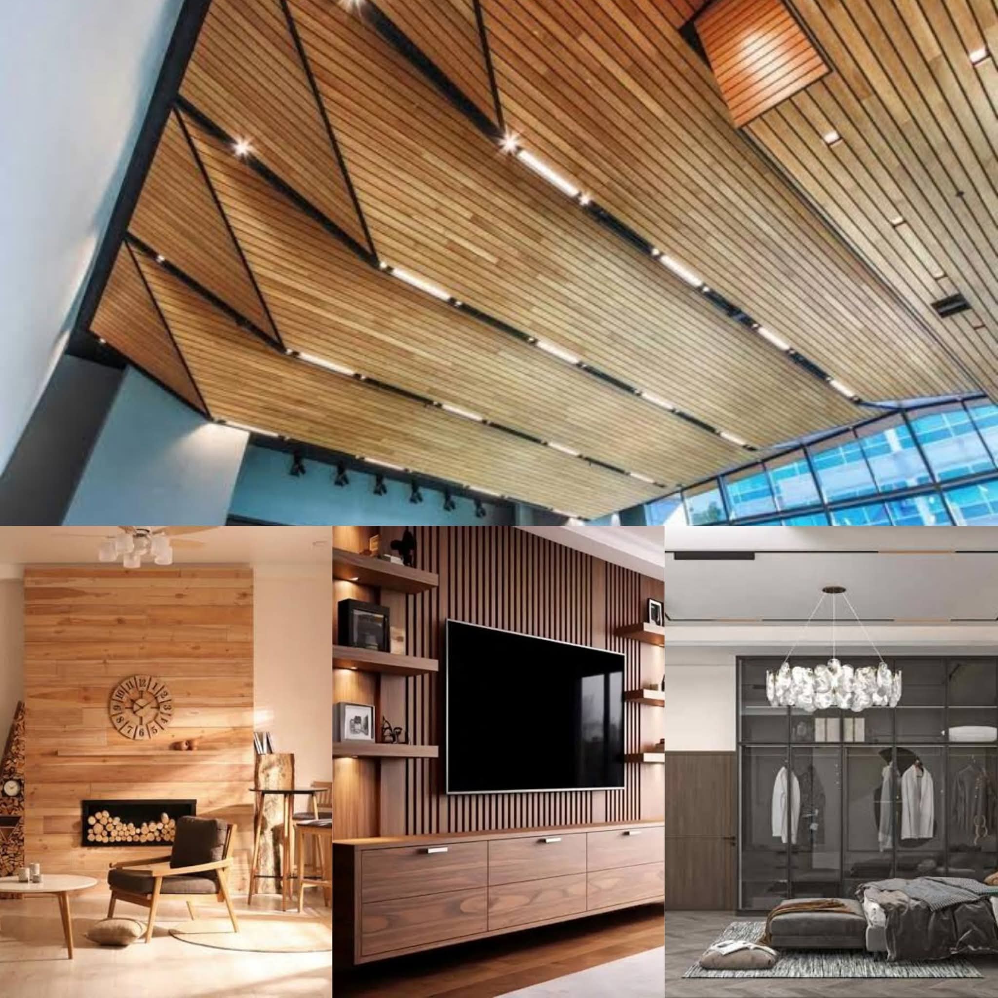 الخشب الممزوج (Slat Wall): ألواح خشبية رفيعة متجاورة تمنح تصميمًا عصريًا فريدًا، وتوفر في بعض الأحيان خصائص عزل صوتي.