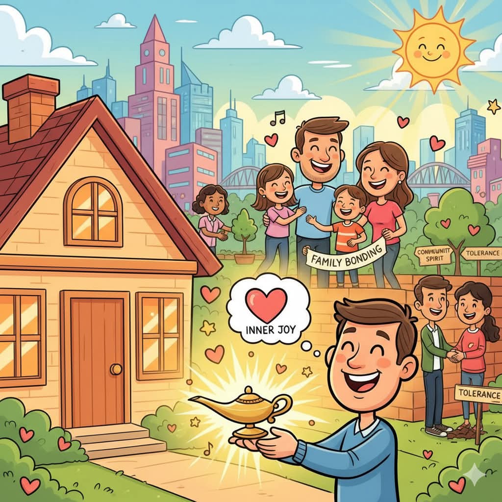 المجتمع السعيد هو الذي يوفر البيئة الداعمة التي تمكن الأفراد والأسر من الازدهار. هنا تتسع دائرة السعادة لتشمل العدالة، الثقة، والمشاركة المدنية.