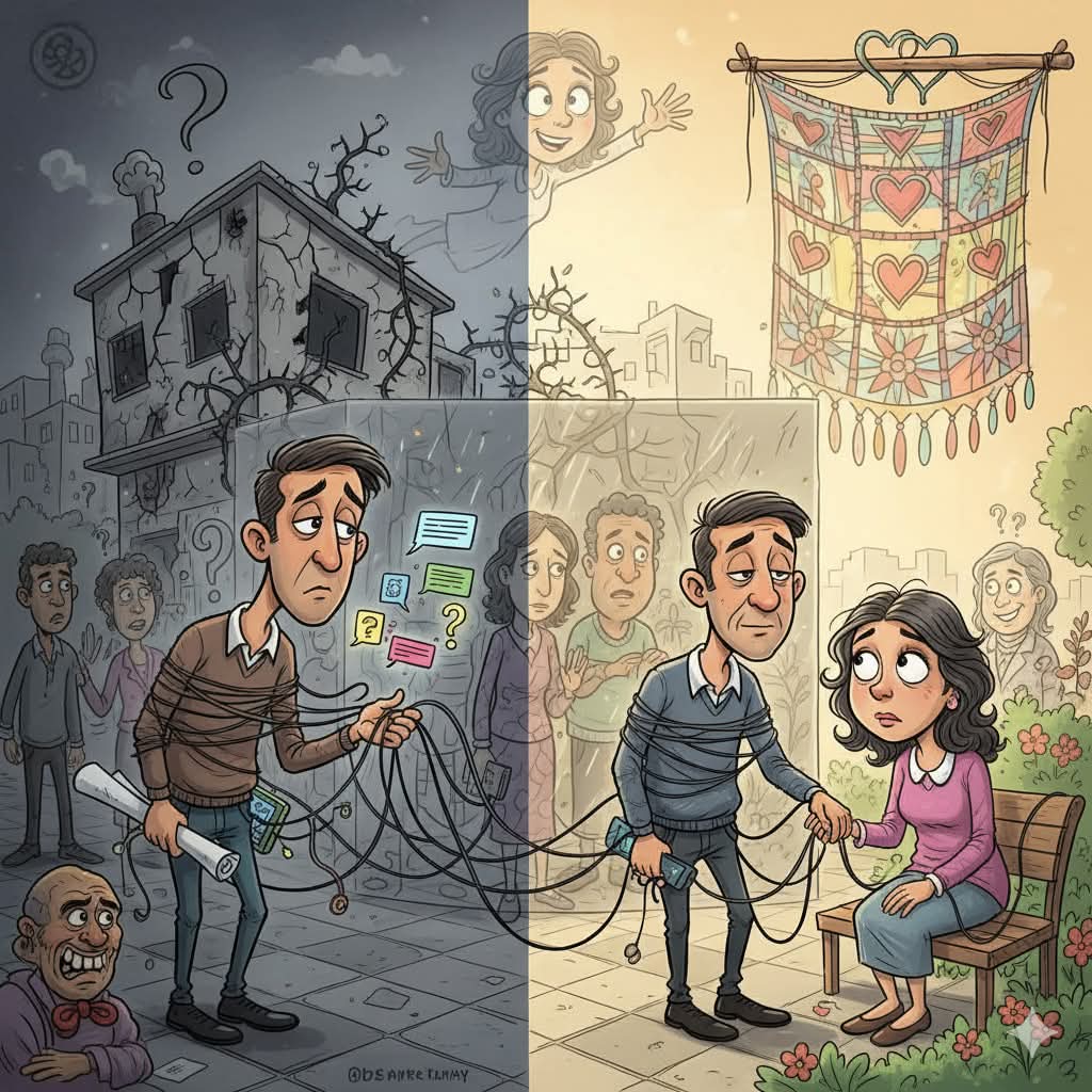 بدأ الأمر بنظرات بسيطة، تلتها أسئلة عابرة. “من كنت تتحدث معه يا عمر؟” “لماذا تأخرت اليوم؟” في البداية، كان عمر يجيب بصبر وابتسامة، يدرك قلق زوجته وحبها له. لكن أسئلة ليلى لم تتوقف، بل أصبحت أكثر تفصيلاً وإلحاحًا. كانت تراقب هاتفه، تتفحص رسائله، وتتبع خطواته. كل تأخير بسيط، كل مكالمة هاتفية، كل تفصيلة في يومه كانت تُحلل وتُفسر بطريقة تُشير إلى الخيانة في ذهنها.