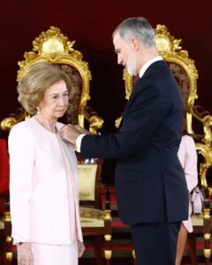 وقد منح الملك والدته جائزة “تويسون دي أورو”، إحدى أرفع وأعرق الجوائز في إسبانيا، تكريمًا لدورها الكبير ومسيرتها الطويلة في خدمة الدولة والأسرة الملكية. وما إن انتهت لحظة التقليد حتى علت القاعة موجة من التصفيق الحار، احتفاءً بالملكة التي تُعد رمزًا للثبات والالتزام داخل العائلة المالكة.