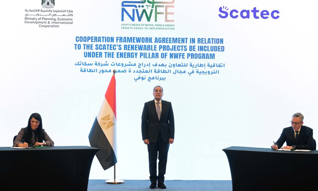 كما شهد رئيس الوزراء توقيع اتفاقية إطارية للتعاون بهدف إدراج مشروعات شركة سكاتك النرويجية في مجال الطاقة المتجددة ضمن محور الطاقة ببرنامج “نُوَفِّي”، حيث وقع هذه الاتفاقية كل من الدكتورة رانيا المشاط، وزيرة التخطيط والتنمية الاقتصادية والتعاون الدولي، مع السيد/ تيري بيلسكوج، الرئيس التنفيذي لشركة سكاتك النرويجية.