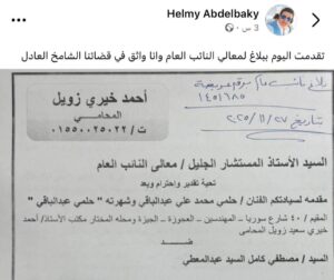 يأتي هذا الإجراء القانوني على خلفية مزاعم الفنان حلمي عبد الباقي بتعرضه للسب والقذف والإهانة من قِبَل النقيب مصطفى كامل. وأكد حلمي عبد الباقي الخبر عبر حسابه الشخصي على “فيسبوك”، معبراً عن ثقته المطلقة في القضاء المصري، قائلاً: “تقدمت اليوم ببلاغ لمعالي النائب العام، وأنا واثق في قضائنا الشامخ العادل”.