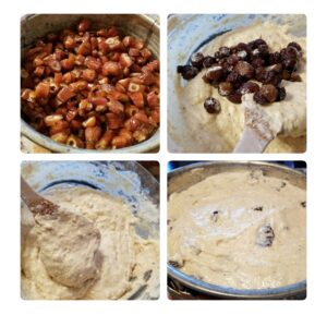 أضيفي الدقيق والزبيب وقلّبي لتحصلي على عجينة متجانسة.