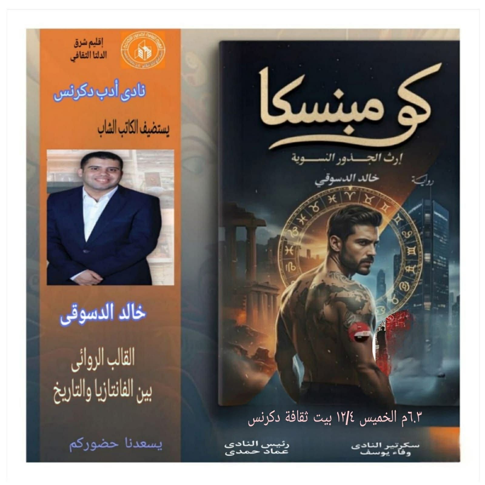 يُنظم نادي أدب دكرنس مساء الخميس 12 ديسمبر، في تمام الساعة 6:30 مساءً، أمسية أدبية بعنوان “الأدب بين الفانتازيا والتاريخ” يستضيف خلالها الكاتب الشاب خالد الدسوقي، وذلك بمقر بيت ثقافة دكرنس.