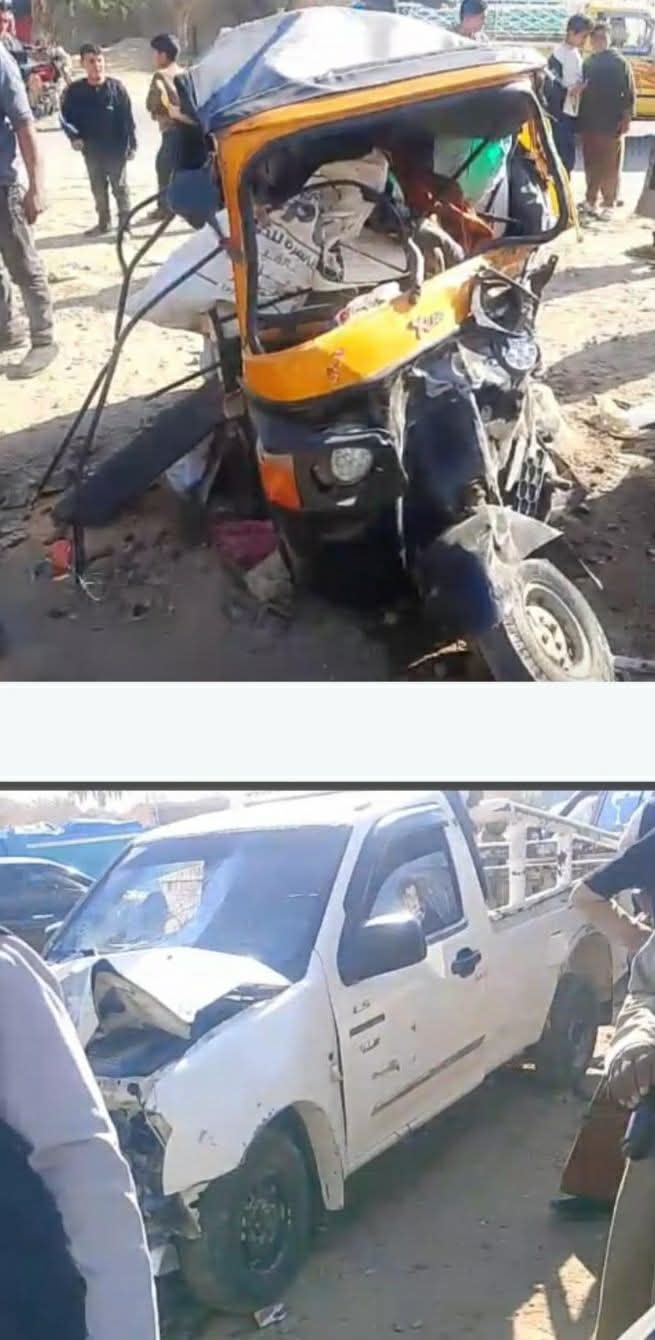 بالانتقال إلى موقع الحادث وبالمعاينة والفحص تبين ان التوك توك كتلة من الصفيح نتيجة الاصطدام، والسيارة الربع نقل بالربع الأمامي كتلة من الصفيح ايضاً، واسفر الحادث عن وفاة شخصين كانو يستقلو التوك توك ويعملوا بمجال اخراج الثعابين من المنازل والأراضي الزراعية.