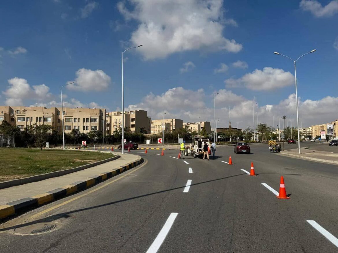تنفيذ أعمال تخطيط طرق ولافتات إرشادية جديدة بمدينة الشيخ زايد
