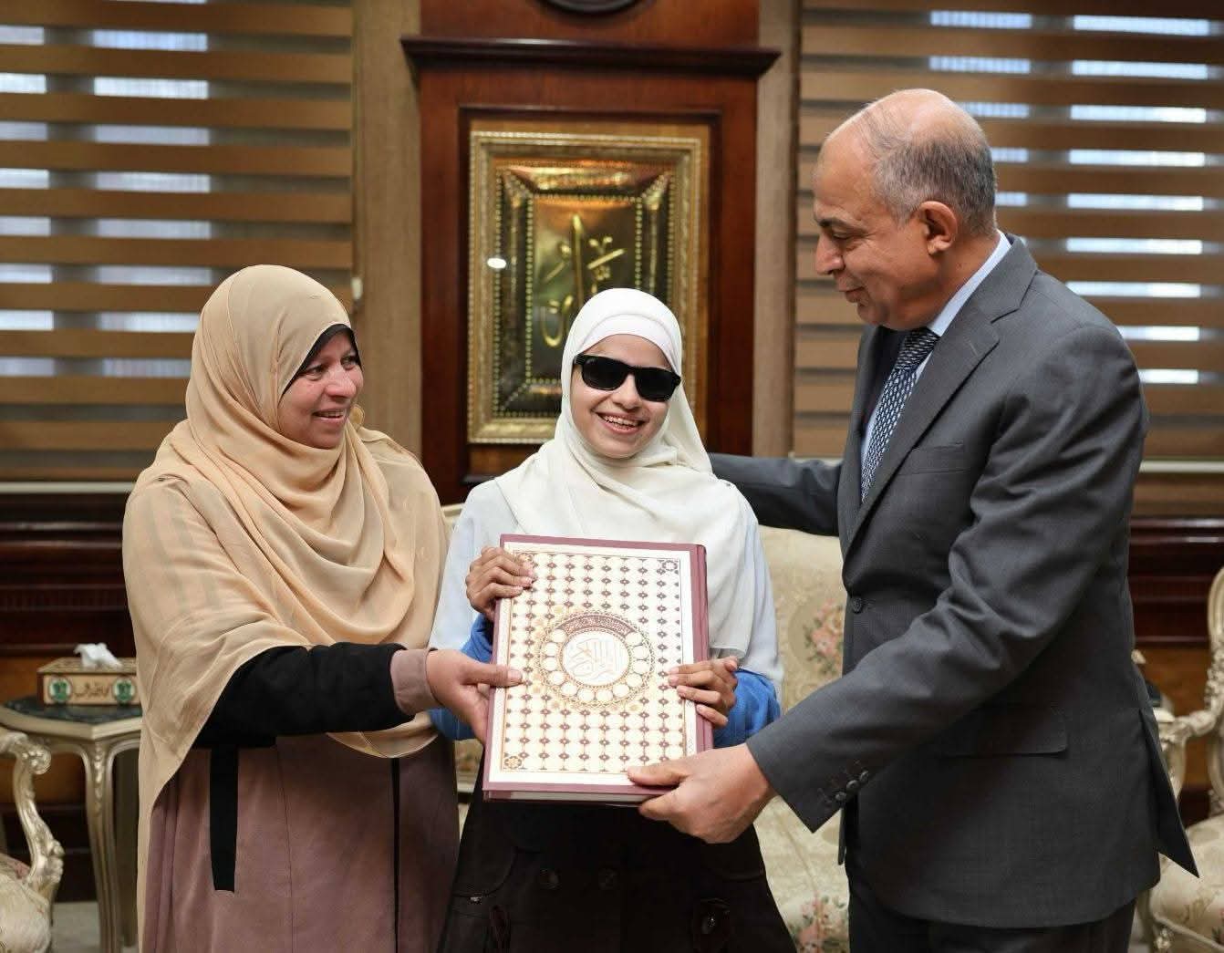 وأعرب المحافظ عن بالغ فخره واعتزازه بموهبة الطالبة «فاطمة»، مؤكدًا أنها تمثل نموذجًا مشرفًا للإرادة والتحدي، وتجسد قدرة ذوي الهمم على الإبداع والتميز، مشيرًا إلى أن فقدان البصر لا يُشكّل عائقًا أمام التفوق أو امتلاك ناصية البيان وحُسن الأداء.