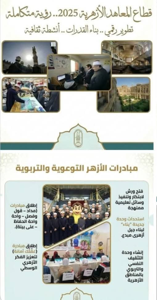 شَهِدَ قطاع المعاهد الأزهرية خلال عام 2025 حركة تطوير شاملة، عكست رؤية الأزهر الشريف في تقديم تعليم رائد يجمع بين الأصالة والمعاصرة، ويواكب متطلبات العصر، ويستجيب لضرورة الارتقاء بالعملية التعليمية وتحديث أدواتها.