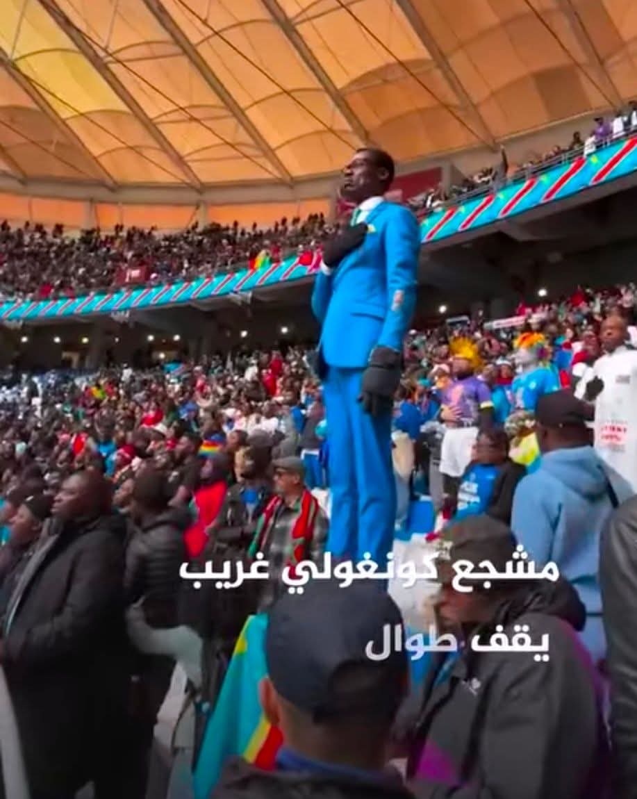 خطف مشجع كونغولي الأنظار خلال إحدى المباريات التي أُقيمت في المغرب، بعدما ظهر مرتديًا بدلة رسمية أنيقة وواقفًا طوال 90 دقيقة دون حراك، في مشهد لافت داخل المدرجات أثار تساؤلات واسعة بين الجماهير والمتابعين.