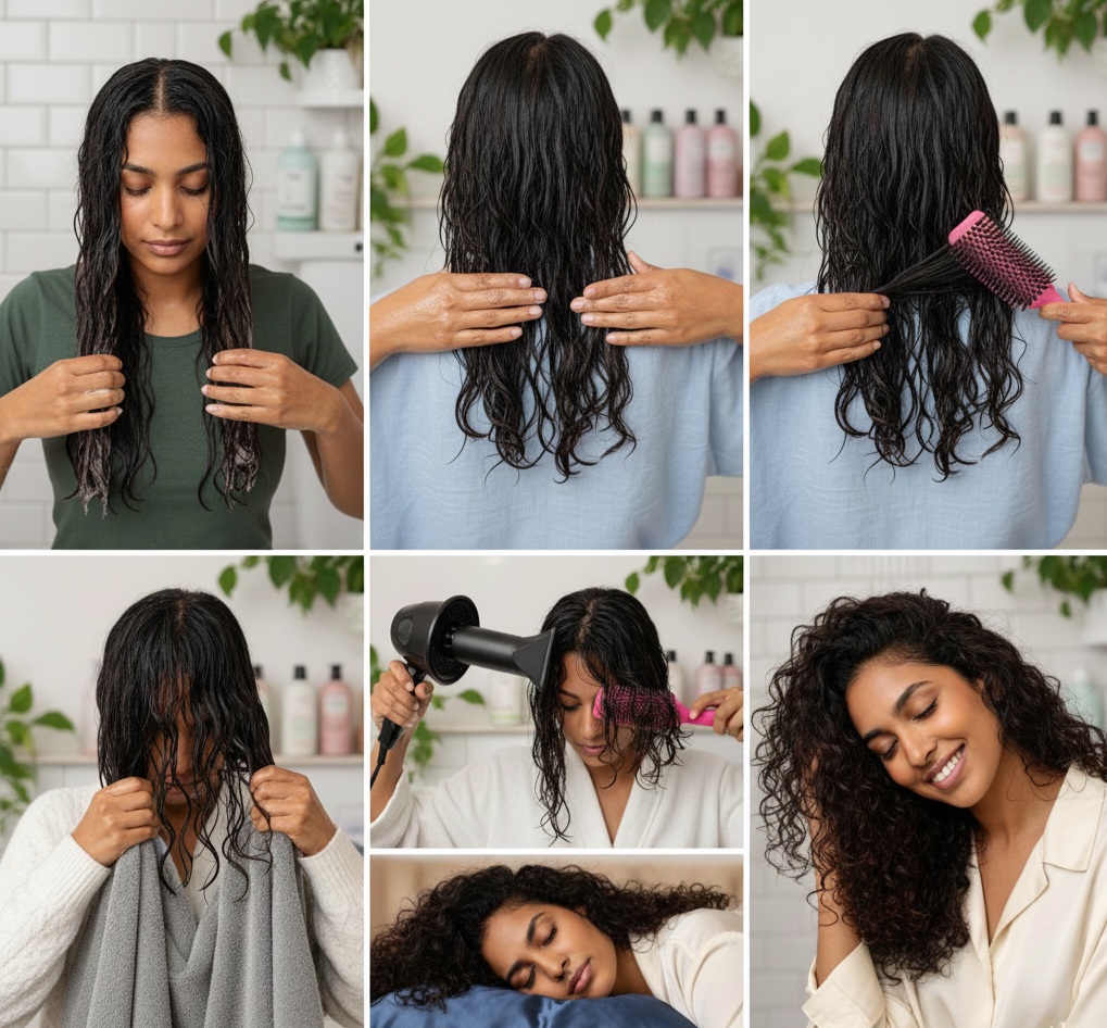 الحصول على شعر المجعد في المنزل يعتمد بشكل أساسي على الترطيب والتكنيك الصحيح. إليكِ الخطوات الأساسية للحصول على تموجات محددة ولامعة: