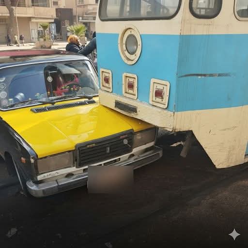 ووفقاً للمعاينة الأولية، تبين أن السرعة الزائدة لقائد السيارة التاكسي أدت إلى اقتحامه حرم الترام أثناء مروره، مما أسفر عن تصادم أحدث تلفيات في هيكل السيارة الخارجي.