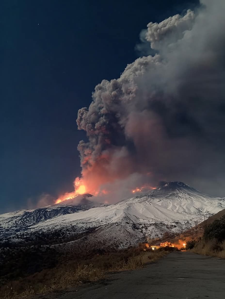 شهد بركان جبل إتنا في مدينة كاتانيا الإيطالية ثورانًا جديدًا، أطلق خلاله نوافير من الحمم البركانية بلغ ارتفاعها نحو 400 متر، إلى جانب تصاعد عمود كثيف من الرماد في سماء المنطقة. كما سُجِّلت انفتاحات جديدة على المنحدر الشرقي للبركان، فيما لا يزال مطار كاتانيا الدولي في حالة تأهب قصوى تحسبًا لتداعيات النشاط البركاني.