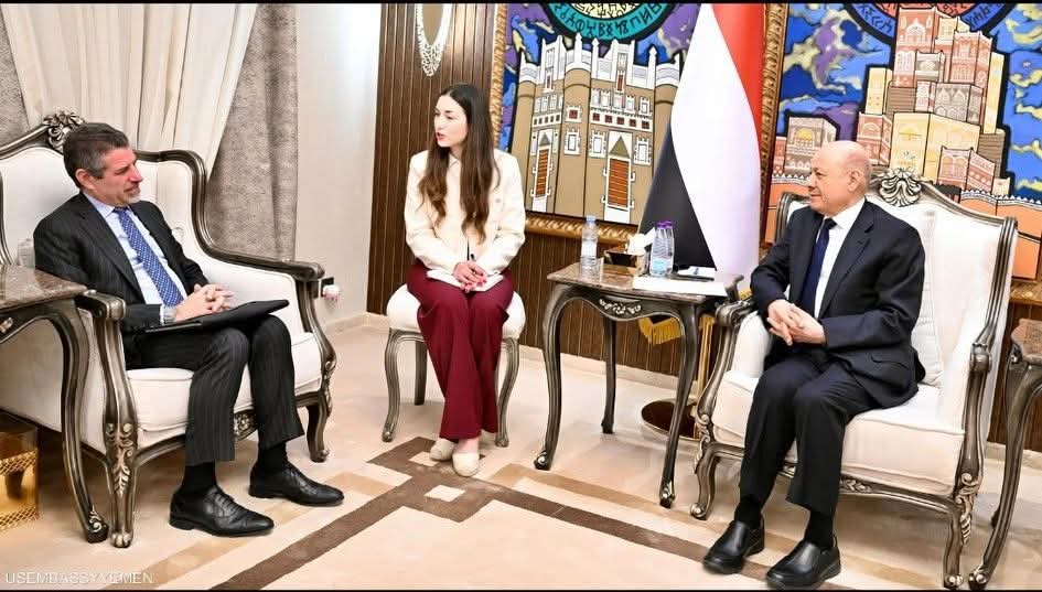 وخلال لقائه رئيس مجلس القيادة الرئاسي، رشاد العليمي، تناول الجانبان آفاق تعزيز التعاون الثنائي، ولا سيما في ما يتعلق بالتصدي لتهديدات جماعة الحوثي والتنظيمات الإرهابية، وعلى رأسها تنظيما القاعدة وداعش، بما يسهم في دعم الاستقرار والأمن في البلاد والمنطقة.