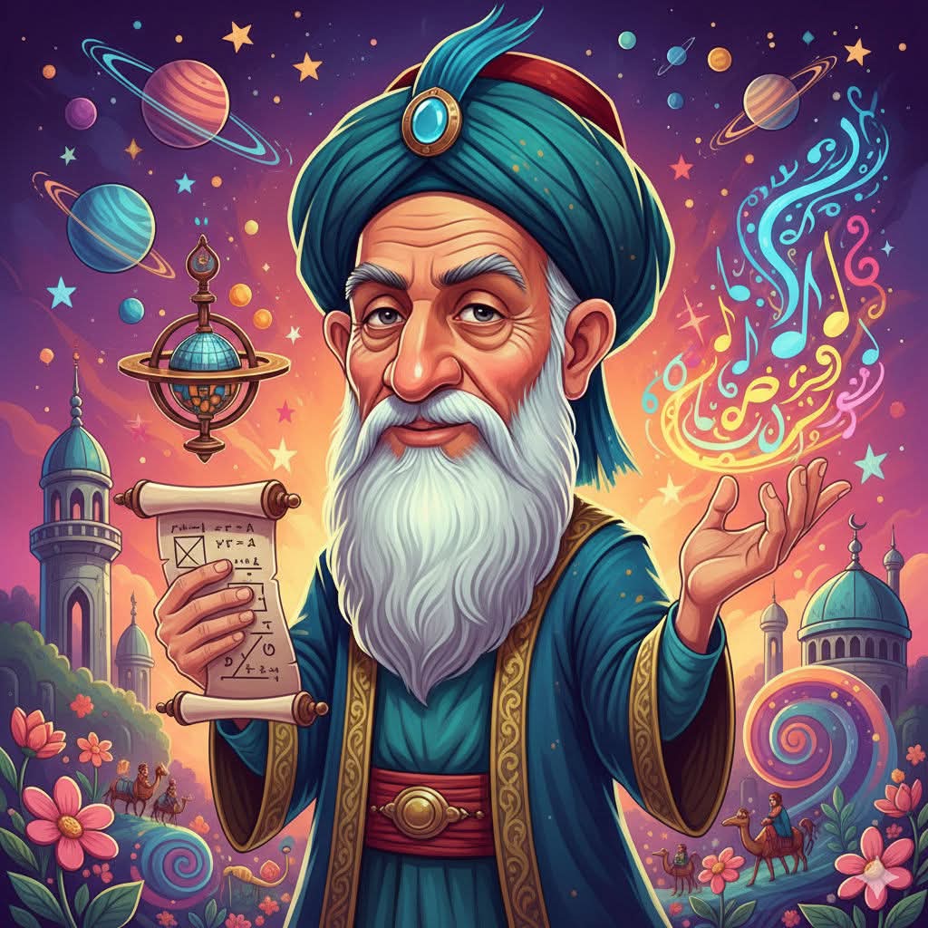 — وُلد غياث الدين أبو الفتح عمر بن إبراهيم الخيام في مدينة نيسابور ببلاد فارس (إيران الحالية) في 18 مايو 1048م. لُقب بـ “الخيام” نسبة إلى حرفة والده الذي كان يصنع الخيام. نشأ في عصر ذهبي للعلم، وتلقى تعليماً شاملاً في الفلسفة، الفلك، والرياضيات. وبما أنه كان “موسوعياً” (Polymath)، فقد توزعت نتاجاته بين العلم البحتي والفلسفة التأملية.