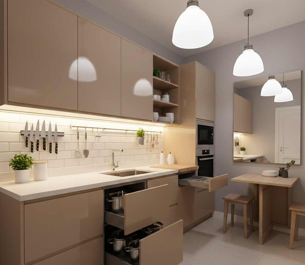 استغلال كل سنتيمتر في المطبخ الصغير يمكن أن يحدث فرقًا كبيرًا: