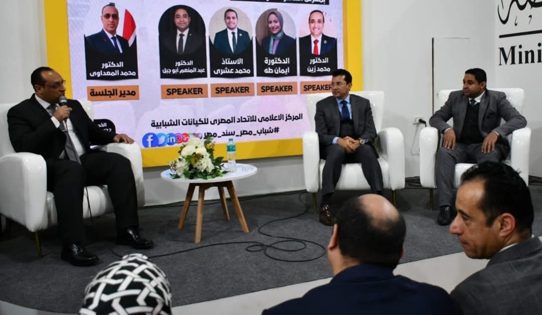وشهد الدكتور أشرف صبحي، وزير الشباب والرياضة، الجلسة الحوارية التي نظمها الاتحاد المصري للكيانات الشبابية، بعنوان «من الفكرة إلى الكيان»، وذلك بجناح وزارة الشباب والرياضة ضمن فعاليات الدورة السابعة والخمسين لمعرض القاهرة الدولي للكتاب.