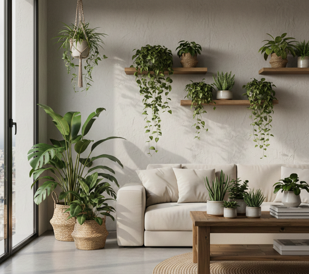 تحسين الهواء: تساعد بعض النباتات على تنقية الهواء ورفع نسبة الأكسجين، ما يمنح شعورًا بالانتعاش.