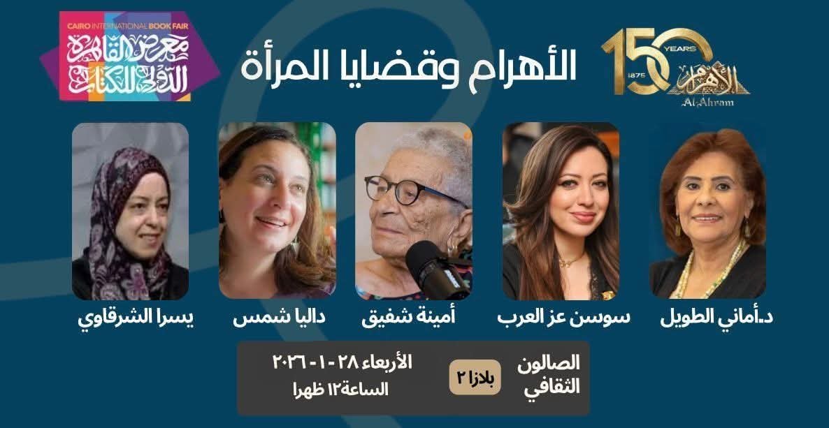 تنظم مؤسسة «الأهرام» ندوة فكرية مهمة بعنوان «الأهرام وقضايا المرأة»، ضمن فعاليات الدورة السابعة والخمسين من معرض القاهرة الدولي للكتاب، وذلك يوم الأربعاء 28 يناير، احتفالًا بمرور 150 عامًا على تأسيس مؤسسة الأهرام، أحد أعرق الصروح الصحفية في الشرق الأوسط والعالم العربي.