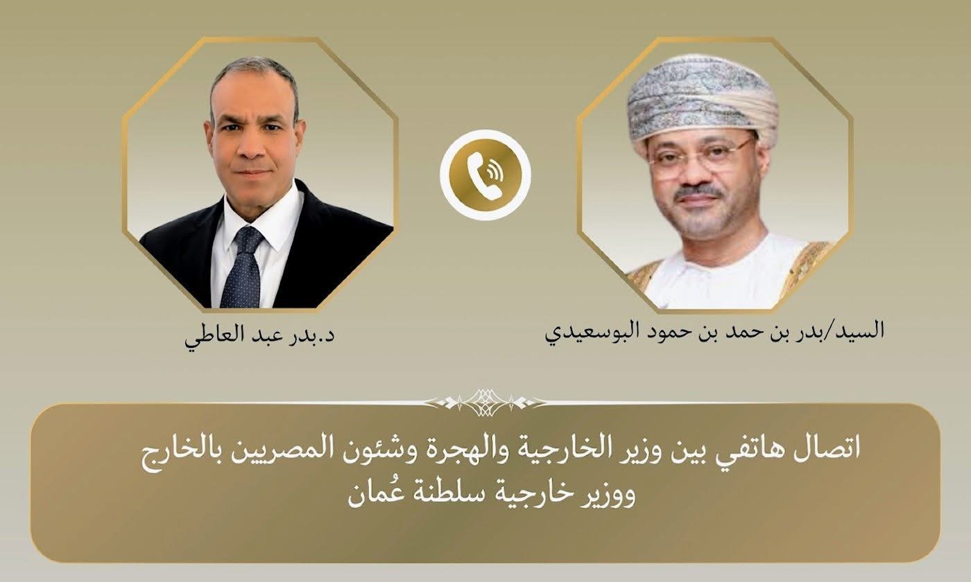 في إطار التواصل الدائم والتنسيق الاستراتيجي بين جمهورية مصر العربية وسلطنة عُمان الشقيقة، أجرى الدكتور بدر عبد العاطي، وزير الخارجية والهجرة وشئون المصريين بالخارج، اليوم الأربعاء الموافق 28 يناير 2026، اتصالاً هاتفياً مع معالي السيد بدر بن حمد بن حمود البوسعيدي، وزير الخارجية في سلطنة عُمان، لبحث أبرز التطورات الإقليمية والدولية ذات الاهتمام المشترك.