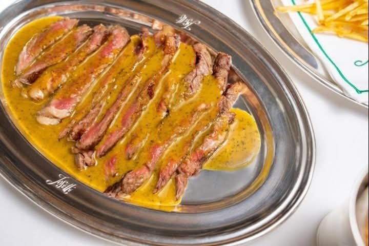 ذوبي الزبدة في درجة حرارة الغرفة وقلبي كل المقادير السابقة وتبلي شرائح اللحم ثم احفظيها لمدة 3 ساعات في الثلاجة وسوى اللحم على درجة الحرارة وقطعي اللحم شرائح رفيعة وزينيها بالصلصة فوقها وحتى لا تتشقق شرائح اللحم نسخن الزبدة في القليل من الكريمة وصبيها فوقها وتقدم وبالهنا