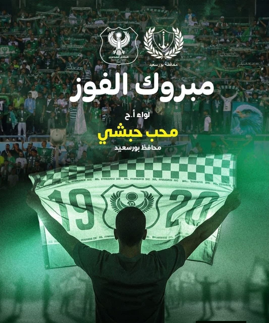 قدّم محب حبشي محافظ بورسعيد خالص التهنئة إلى النادي المصري، عقب نجاح الفريق في حجز مقعده بدور ربع النهائي من كأس الكونفدرالية الإفريقية، مؤكدًا أن ما تحقق يعكس روح الإصرار والعطاء التي يتمتع بها اللاعبون والجهاز الفني.
